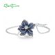 SANTUZZA 925 Sterling Silver Bracelet Blue Spinel Lily Flower Fine Jewelry