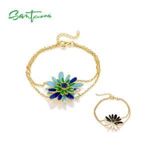 1. SANTUZZA 925 Sterling Silver Rings Green & Blue Enamel Twisted Pattern Jewelry