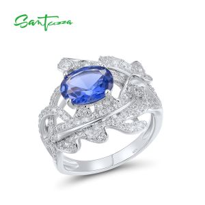 14. SANTUZZA 925 Sterling Silver Rings White CZ Created Blue Sapphire Jewelry