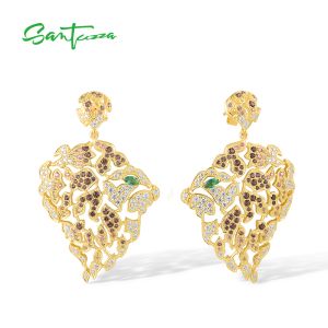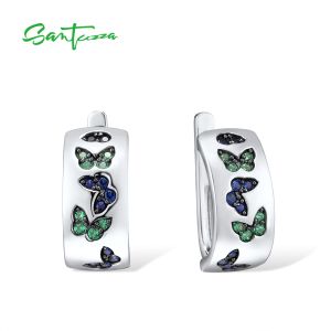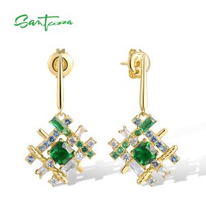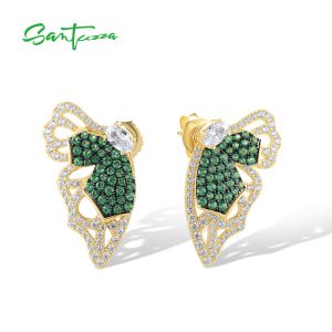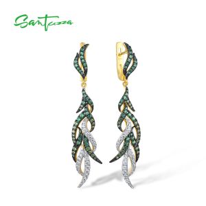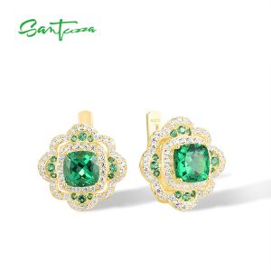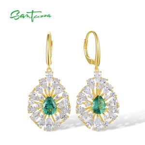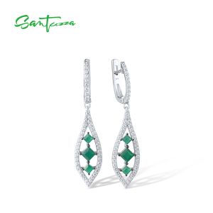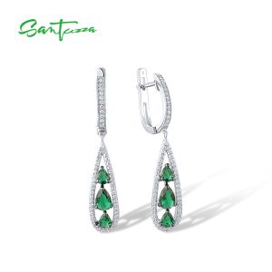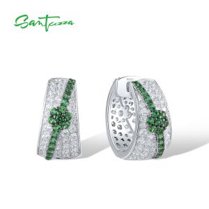 1. SANTUZZA 925 Sterling Silver Earrings For Women White CZ Green Spinel Fine Jewelry