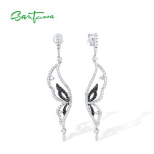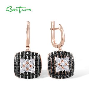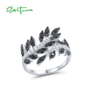 6. SANTUZZA 925 Sterling Silver Rings Black Spinel White Cubic Zirconia Plant Fine Jewelry