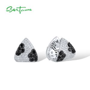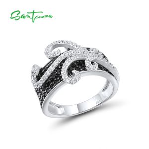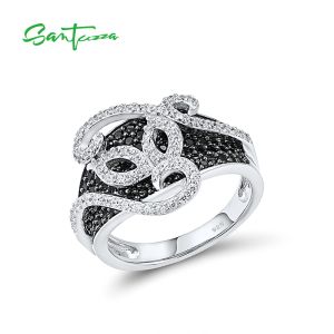 8. SANTUZZA 925 Sterling Silver Rings Black Spinel White Cubic Zirconia Ring Fine Jewelry