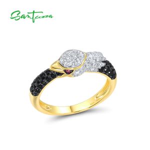 17. SANTUZZA Silver Rings 925 Sterling Silver Black Spinel White CZ Gold Color Ring Jewelry