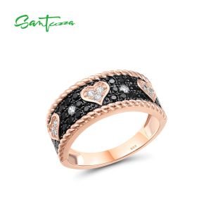 1. SANTUZZA Silver Rings 925 Sterling Silver Sparkling Black Spinel White CZ Ring Fine Jewelry