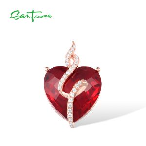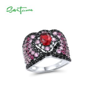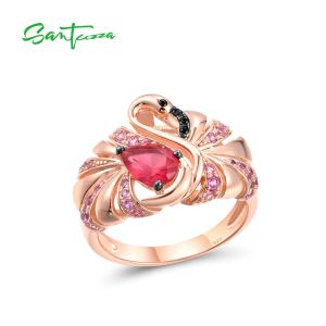 14. SANTUZZA 925 Sterling Silver Rings Red Stones Black Spinel Flamingo Rose Gold Color Jewelry