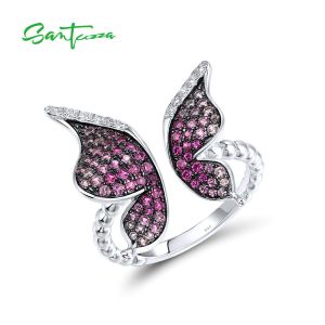 9. SANTUZZA 925 Sterling Silver Ring Created Pink Sapphire Ruby Opened Butterfly Jewelry