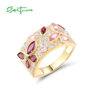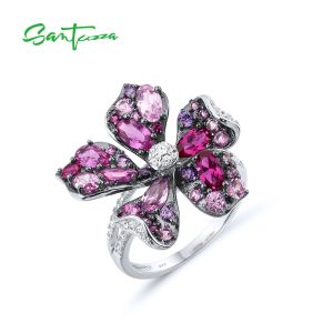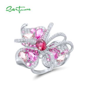 21. SANTUZZA Genuine 925 Sterling Silver Ring Sparkling Pink Spinel Colorful Flower Jewelry