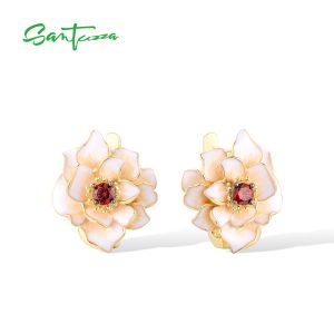 1. SANTUZZA 925 Sterling Silver Rings White Cubic Zirconia Enamel Tulip Flower Jewelry
