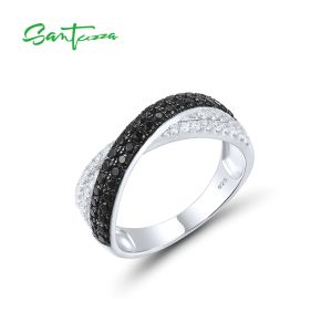 17. SANTUZZA 925 Sterling Silver Rings Black spinel Finger Stackable Fine Jewelry