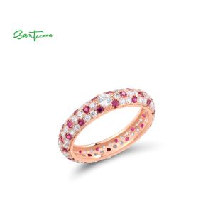 3. SANTUZZA 925 Sterling Silver Rings Created Ruby Stackable Ring Fine Jewelry