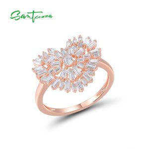 3. SANTUZZA 925 Sterling Silver Rings White Cubic Zirconia Rose Gold Color Heart Fine Jewelry