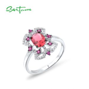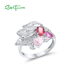 25. SANTUZZA 925 Sterling Silver Rings Red Pink Stones White CZ Cluster Ring Fine Jewelry