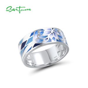 1. SANTUZZA Silver Rings 925 Sterling Silver Blue Flower Enamel Rings Jewelry