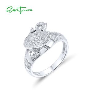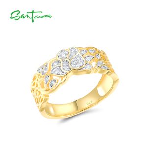 35. SANTUZZA 925 Sterling Silver Rings White Cubic Zirconia Lace Flower Ring Fine Jewelry