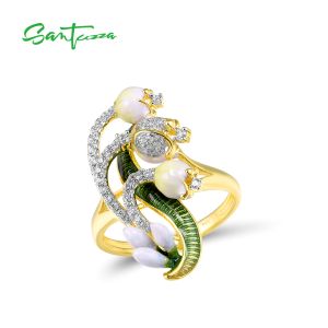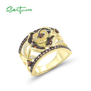 30. SANTUZZA 925 Sterling Silver Rings Nano Brown Spinel White CZ Gold Color Flower Ring Jewelry