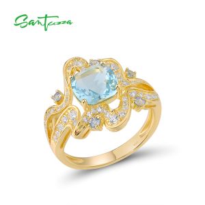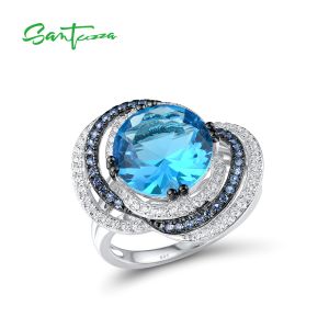 24. SANTUZZA 925 Sterling Silver Ring White Cubic Zirconia Blue Stones Gold Color Ring Fine Jewelry