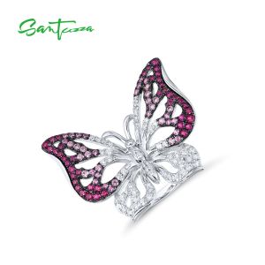 4. SANTUZZA 925 Sterling Silver Rings Red Stones White Cubic Zirconia Butterfly Ring Fine Jewelry