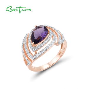 10. SANTUZZA 925 Sterling Silver Rings Pear Purple Stone White CZ Ring Fine Jewelry