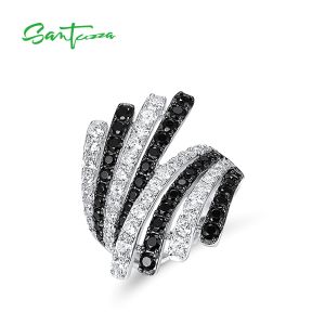 3. SANTUZZA Silver Rings 925 Sterling Silver Sparkling Black Spinel White CZ Ring Fine Jewelry