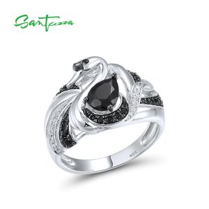 13. SANTUZZA 925 Sterling Silver Rings Black Spinel White Cubic Zirconia Swan Ring Fine Jewelry