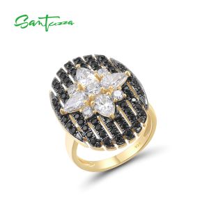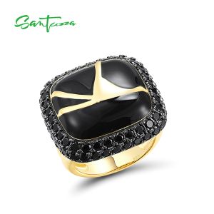 19. SANTUZZA 925 Sterling Silver Rings Gold Color Black Spinel Edgy Handmade Enamel Ring Jewelry