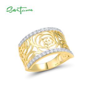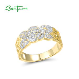 8. SANTUZZA 925 Sterling Silver Rings White Cubic Zirconia Rose Lace Flower Ring Jewelry