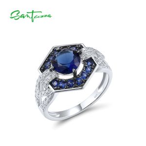 2. SANTUZZA 925 Sterling Silver Rings Blue Stones White CZ Solitaire Ring Fine Jewelry