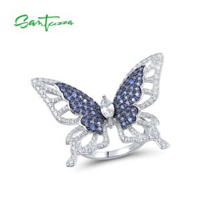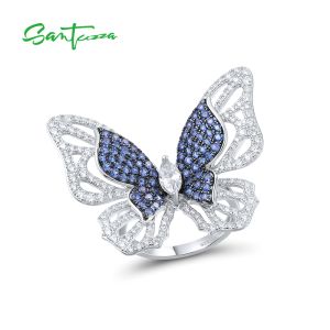 21. SANTUZZA 925 Sterling Silver Rings Blue Spinel White CZ Butterfly Ring Fine Jewelry