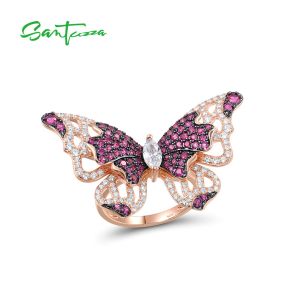 17. SANTUZZA 925 Sterling Silver Rings Pink Gems Butterfly Ring Rose Gold Plated Fine Jewelry