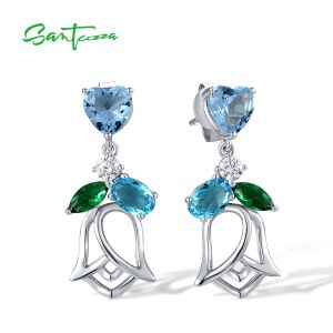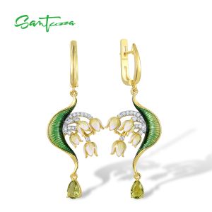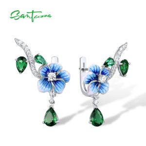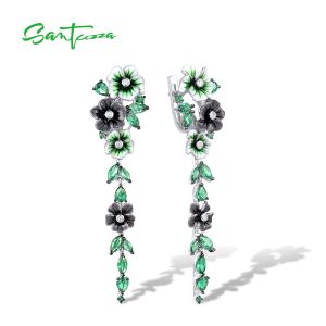 2. SANTUZZA 925 Sterling Silver Earrings For Women White CZ Green Spinel Fine Jewelry