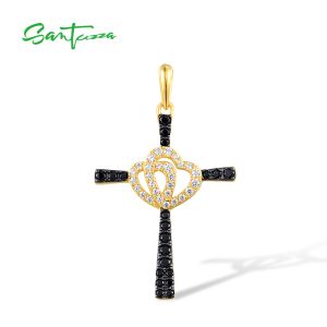 7. SANTUZZA 925 Sterling Silver Rings Black Green Spinel White CZ Flower Fine Jewelry
