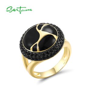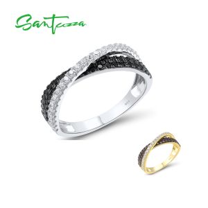 21. SANTUZZA 925 Sterling Silver Rings Black Spinel White Cubic Zirconia Jewelry
