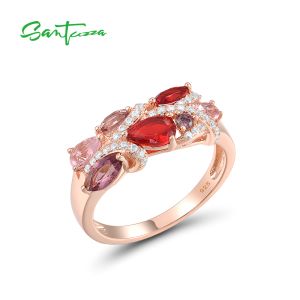 30. SANTUZZA Silver Rings 925 Sterling Silver Red Pink Stones White CZ Jewelry