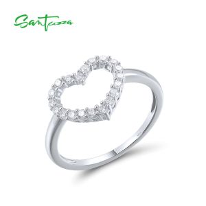 19. SANTUZZA 925 Sterling Silver Rings White Cubic Zirconia Heart Shaped Minimalist Sweet Fine Jewelry