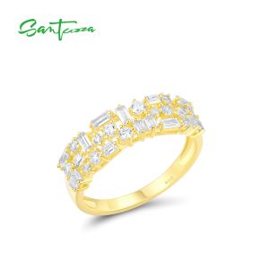 15. SANTUZZA 925 Sterling Silver Rings White Cubic Zirconia Gold Color Fine Jewelry