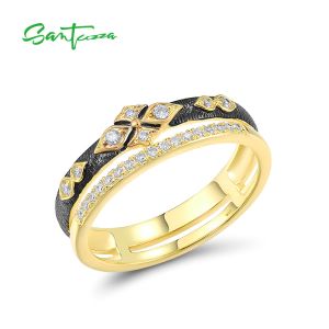 9. SANTUZZA 925 Sterling Silver Ring White Cubic Zirconia Yellow Black Plating Luxury Jewelry