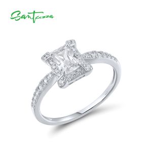 16. SANTUZZA 925 Sterling Silver Rings White Cubic Zirconia Solitaire Ring Fine Jewelry