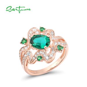 10. SANTUZZA 925 Sterling Silver Ring For Women White Cubic Zirconia Green Spinel Fine Jewelry