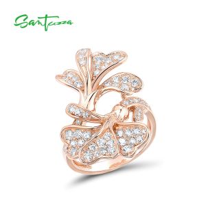 21. SANTUZZA Silver Ring 925 Sterling Silver White Cubic Zirconia Rose Gold Color Flower Fine Jewelry