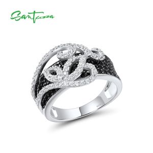 30. SANTUZZA 925 Sterling Silver Rings Black Spinel White Cubic Zirconia Ring Fine Jewelry