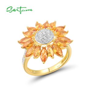 12. SANTUZZA Silver Ring 925 Sterling Silver Yellow Nano &White Cubic Zirconia Gold Color Sun Flower Jewelry