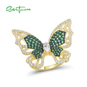 7. SANTUZZA 925 Sterling Silver Rings Green Spinel White Cubic Zirconia Butterfly Ring Fine Jewelry