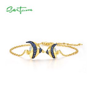 8. SANTUZZA 925 Sterling Silver Ombre Rings Blue Spinel White Zirconia Lily Flower Jewelry
