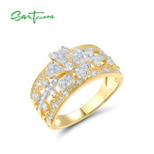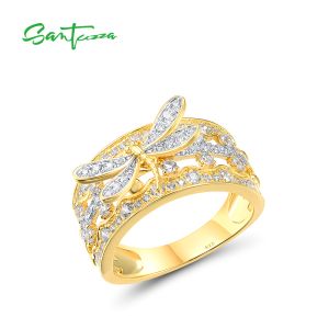 10. SANTUZZA 925 Sterling Silver Rings White Cubic Zircon Dragonfly Fine Jewelry