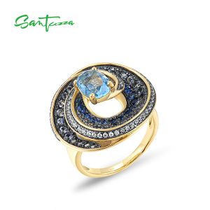 5. SANTUZZA 925 Sterling Silver Rings Blue Stones White CZ Solitaire Ring Fine Jewelry