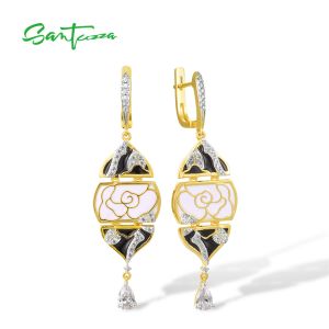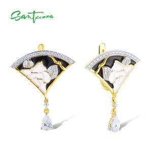 13. SANTUZZA 925 Sterling Silver Rings Gold Color Black Spinel Edgy Handmade Enamel Ring Jewelry