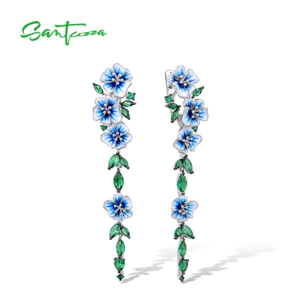 SANTUZZA 925 Sterling Silver Earrings For Blue Flowers Dangling Jewelry Enamel