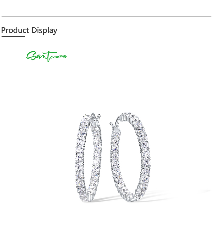 SANTUZZA 925 Sterling Silver Hoop Earrings White CZ Glimmer Inter Outer Fine Jewelry