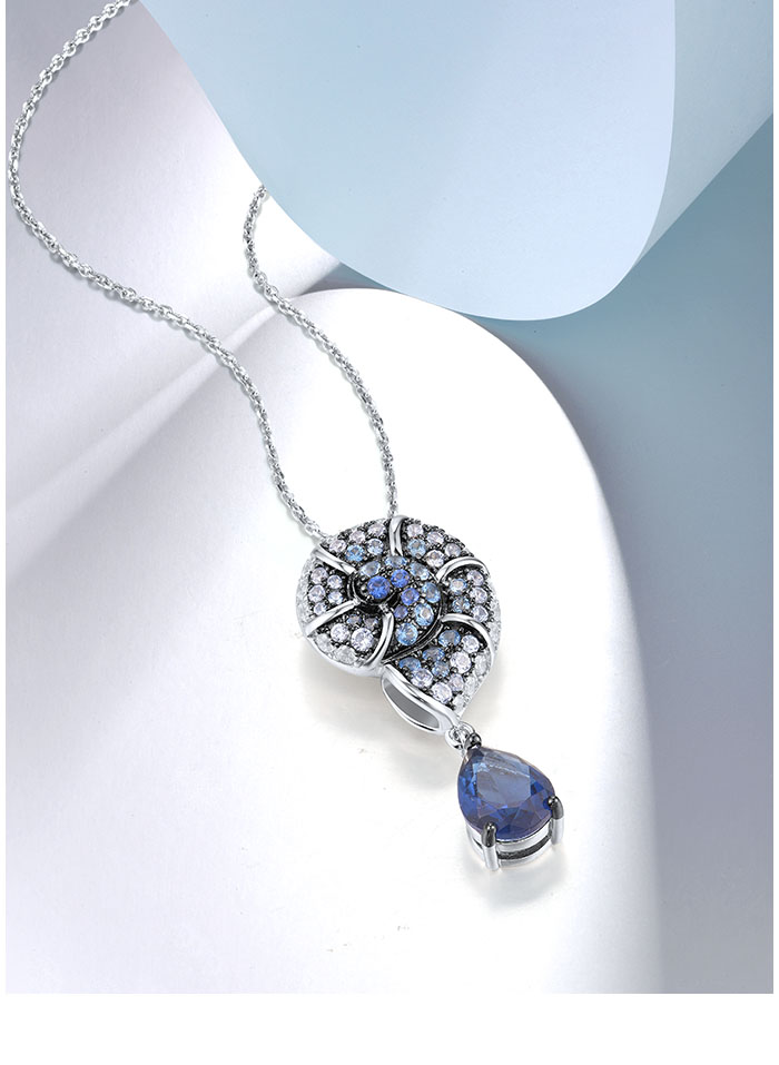 SANTUZZA 925 Sterling Silver Pendan Blue Spinel White Cubic Zirconia Conch Shell Screw Ocean Jewelry
