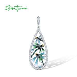 SANTUZZA 925 Sterling Silver Pendant Sparkling White CZ Enamel Blue Flower Jewelry
